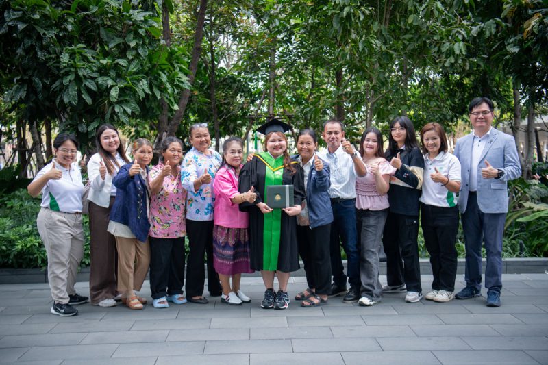 สำหรับความสำเร็จทางการศึกษาและการทำงาน “น้องอั้ม” สามารถคว้าปริญญาตรี เกียรตินิยมอันดับ 2 คณะการจัดการธุรกิจอาหาร จากสถาบันการจัดการปัญญาภิวัฒน์ (PIM) มาครองได้สำเร็จ ท่ามกลางความยินดีของครอบครัวและคณะผู้บริหารมูลนิธิฯ โดยปัจจุบันน้องอั้มได้เข้าทำงานในตำแหน่ง รองผู้จัดการ ร้าน Bellinee’s สาขาวิภาวดีรังสิต ซึ่งนับเป็นก้าวสำคัญที่แสดงถึงความมั่นคงในอาชีพที่เกิดจากการบ่มเพาะทักษะมาเป็นอย่างดี