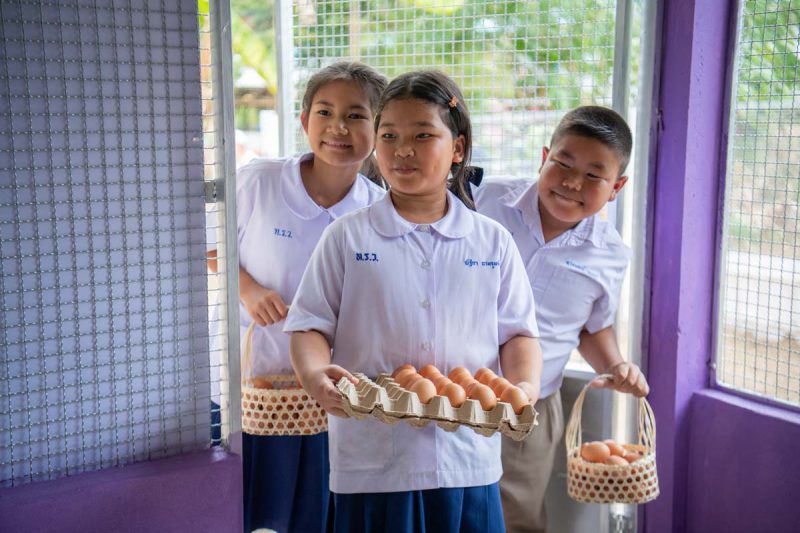 สำหรับโรงเรียนทุกแห่งที่เข้าร่วมโครงการฯ จะได้รับมอบโรงเรือนไก่ไข่ที่ได้มาตรฐาน พร้อมองค์ความรู้ในการบริหารจัดการและเลี้ยงดูไก่ไข่ ซึ่งทำให้โรงเรียนสามารถผลิตไข่ไก่สดที่มีคุณภาพสูงเพื่อนำมาประกอบเป็นอาหารกลางวันให้นักเรียนได้รับประทานโปรตีนอย่างสม่ำเสมอ นอกจากนี้นักเรียนได้เรียนรู้จากการปฏิบัติ อาทิ ด้านการเลี้ยงสัตว์ การดูแล การบริหารจัดการ การจัดทำบัญชี ตลอดจน ถึงการขายและการตลาด สนับสนุนให้นำไข่ไก่ไปประกอบอาหาร แปรรูป เป็นอาหารที่มีความหลากหลาย เสริมสร้างโภชนาการ